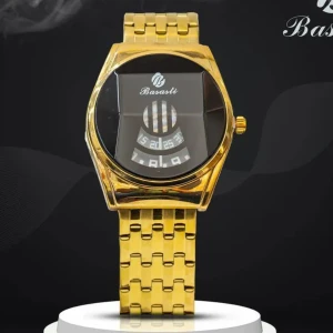 السوار: سوار من خليط معدني من الستيل قابل للتعديل، متين ومريح في الارتداء يأتي باللون الذهبي، ومينا أبيض