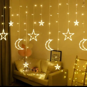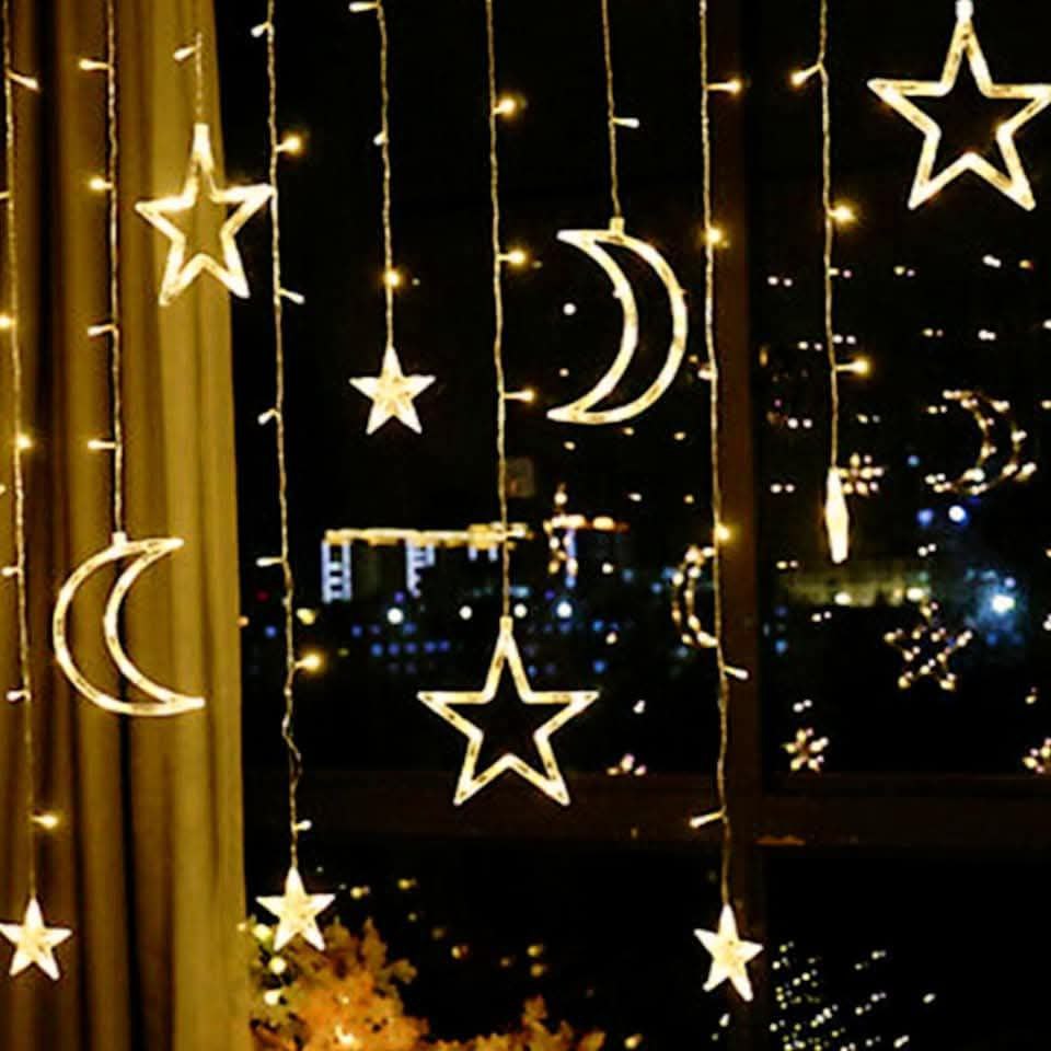 حبل زينة شلال هلال ونجوم 3 متر مضئية وبتقدر تتحكم فيها بتشتعل ع الكهرباء