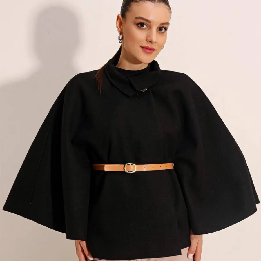 *معطف جلد صناعي مع حزام خصر