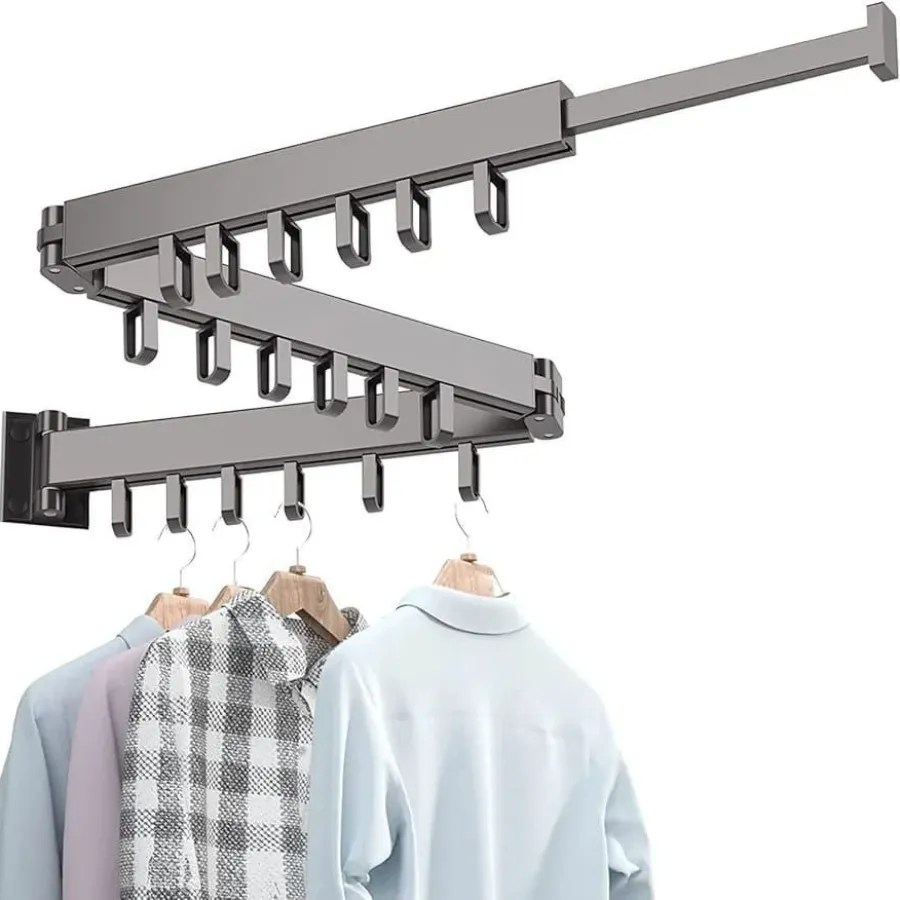 🔹️ 18خطاف تدور 360 درجة تدور وتتحرك تلقائيًا، سهلة الدفع والسحب وتنظيم الملابس.