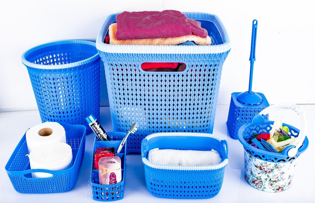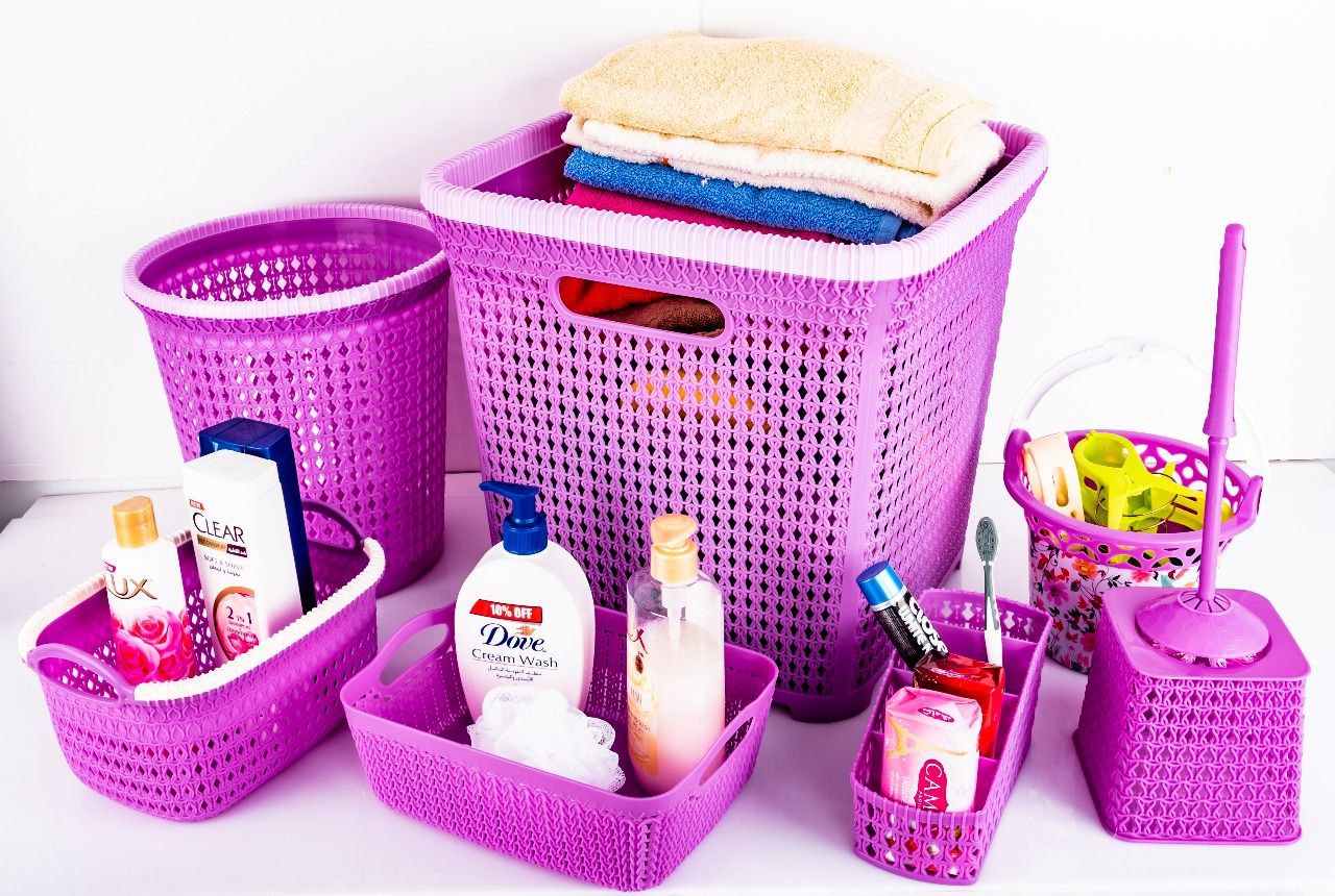 طقم غسيل ويزو ٧ قطع مكون من (طبق غسيل كبير/طبق غسيل صغير/سبت مشابك/فرشة تواليت بالقاعده/منظم للشامبو والفرش والمعجون /سبت/ باسكيت سلة )