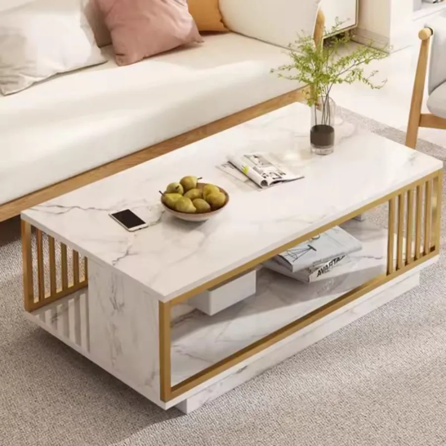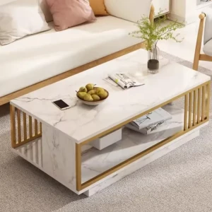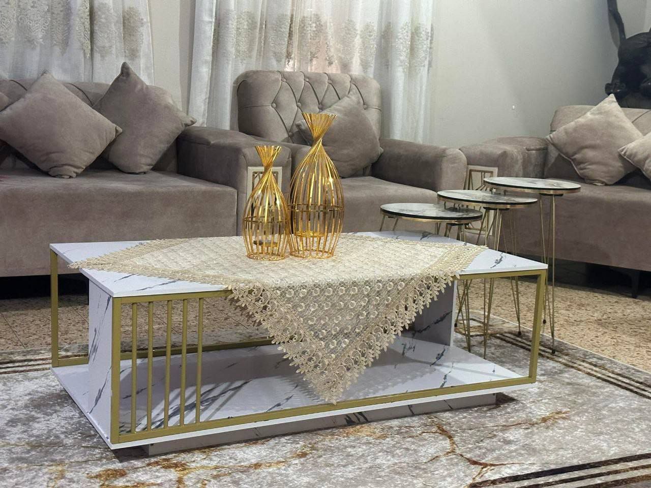 ✨مصنوعة من ألواح رخامية بيضاء صناعية وإطار من الحديد الذهبي الأنيق.
