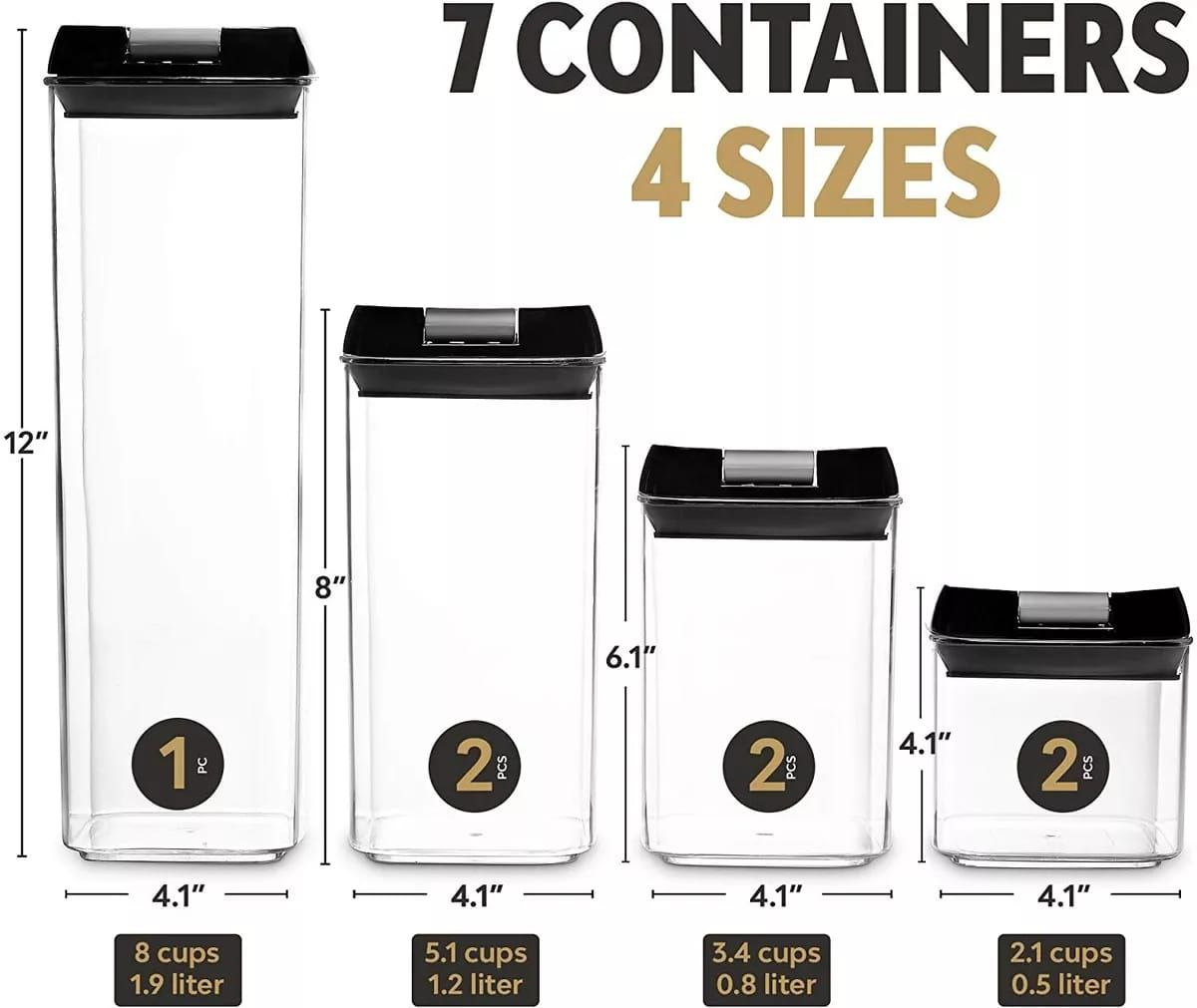💎7 حاويات مختلفة1 × حاوية طويلة (1.9 لتر)2 × حاوية متوسطة (1.2 لتر).2 × حاوية صغيرة (0.8 لتر)2 × حاوية أصغر (0.5 لتر)