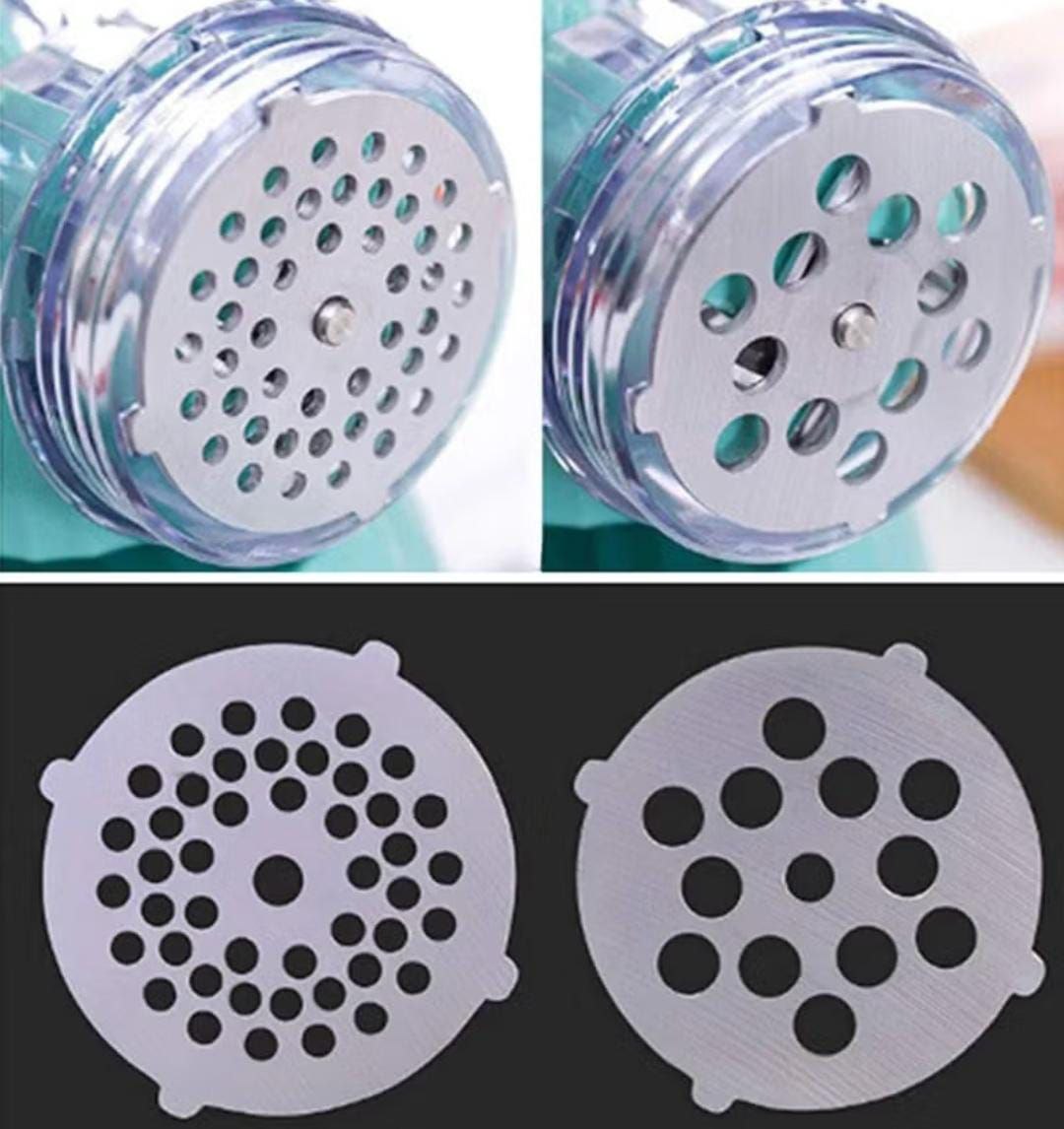 💜 مزوّدة بمكبس للضغط على اللحوم أو الثوم داخل المفرمة بشكل آمن
