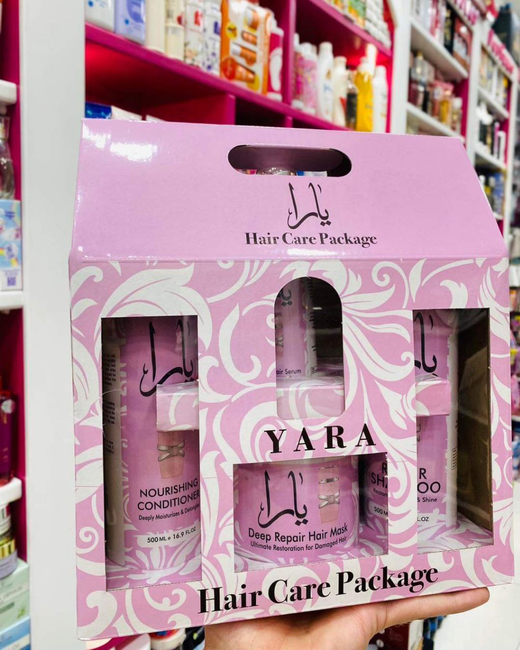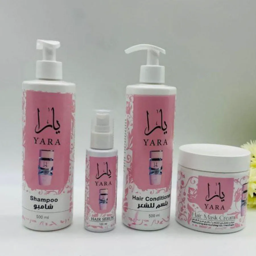 بكج يارا للعنايه بالشعر مكون من اربع قطع :شامبو 🌸بلسم 🌸حمام زيت 🌸سيروم مغذي للشعر 🌸✅ البكج خالي من الاملاح ويناسب كل أنواع الشعر بالاضافة الى رائحته المميزة