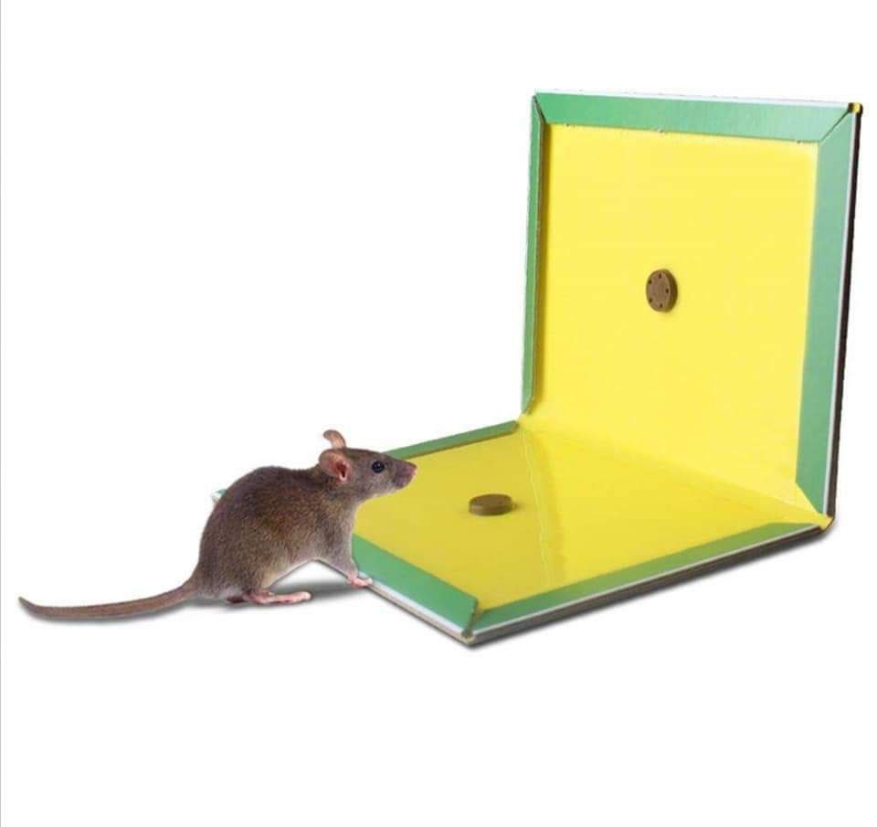 ✨سيلتصق الفأر بالطبقة المليئة بالغراء عند محاولته الوصول إلى الطعام.‼️