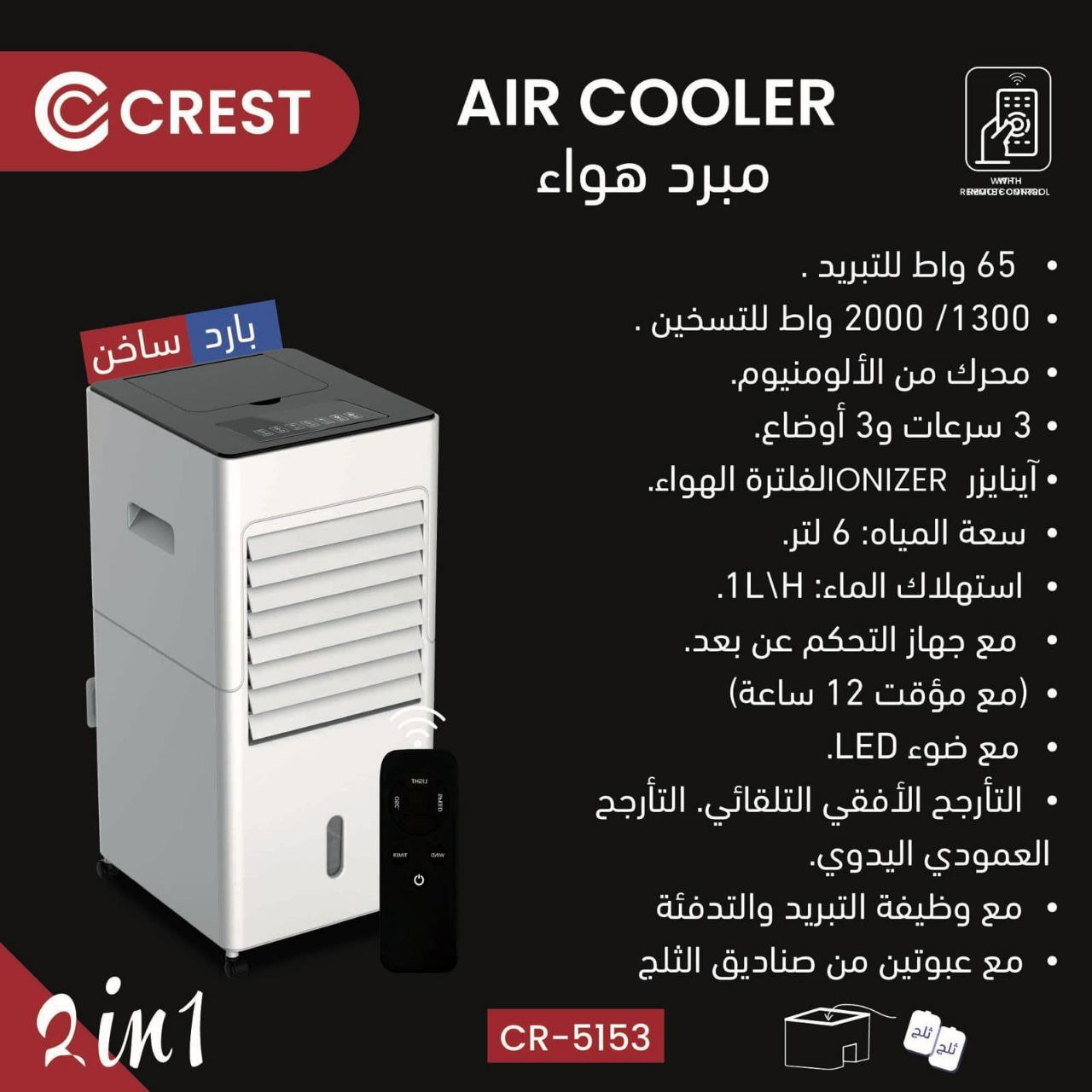 ✅ تقنيات حديثة كتعدد السرعات، مؤقت، ريموت كونترول، إضاءة، شاشات رقمية، وغيرها.استمتع بصيف منعش مع مبردات الهواء من كريست الجديدة كلياً.