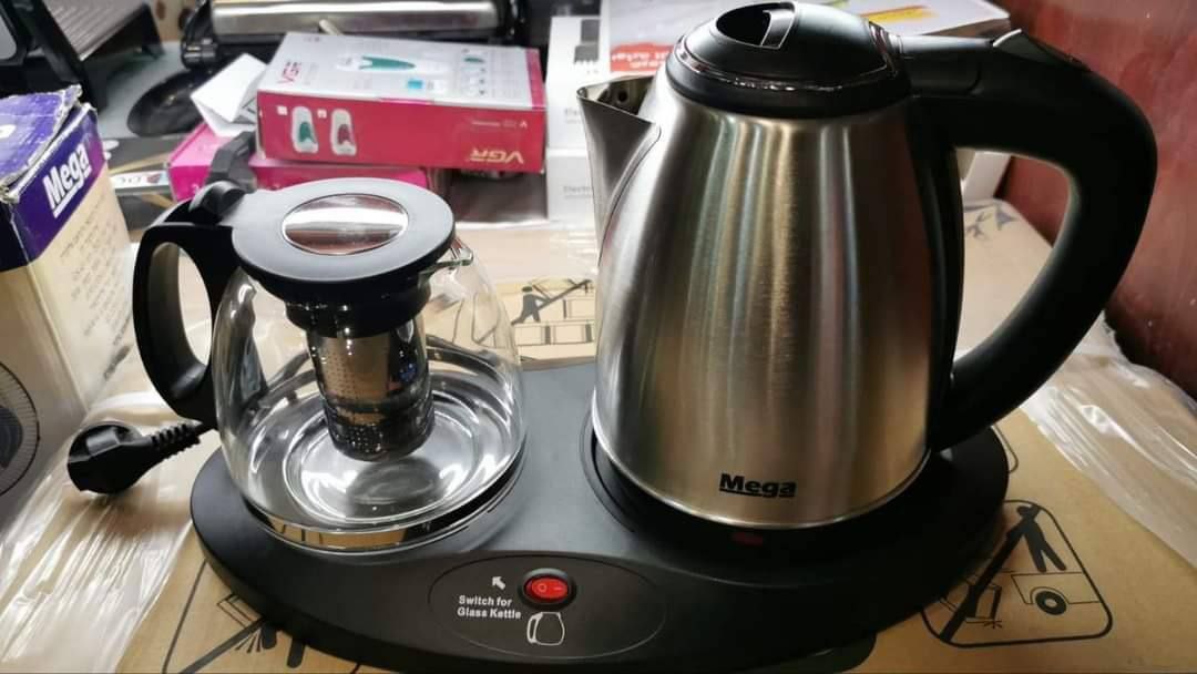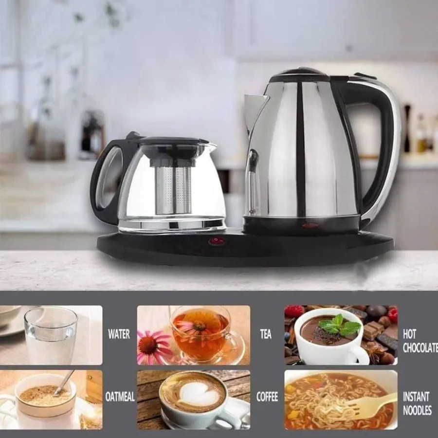 (غلاية ستانلس ستيل+إبريق زجاجي مع مصفاه)
