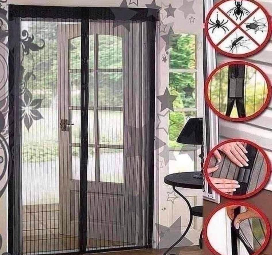 ✅️ توضع على الباب او الشباك سهلة التركيب تركبها بنفسك مقاسها عرض 1 متر تقريبا و طولها 1.8 متر تقريبا عبارة عن قطعتين قطعة نصف متر فى 1.8 متر و الاخرى مثلها بالضبط و بها مغناطيس من الوسط يجعلها تقفل لوحدها فور عبورها