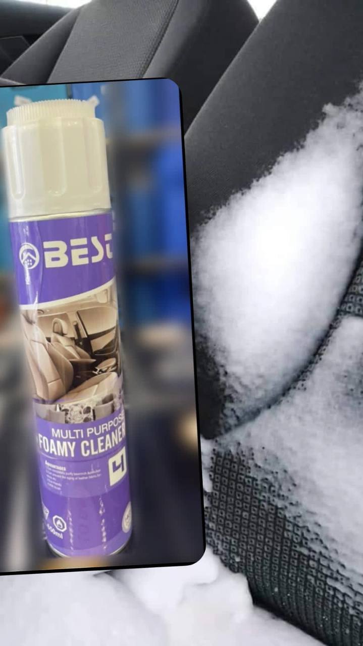 ٣.يحتوي على فرشاة تنظيف في الغطاء.يقوم بتنظيف السيارات والبيوت من الداخل والمقاعد والسجاد والمفروشات يحتوي على تركيبة تتغلغل في النسيج وتزيل الاوساخ والروائح وتساعد على استعادة اللون والمظهر الحقيقي.