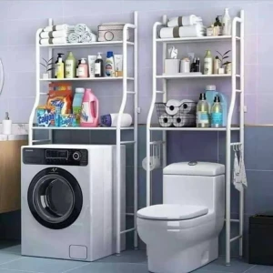 ستاند معدن مطلي كروم ضد الصدأ رفوف لحمام يوضع فوق {الغسالة أو قاعدة الفرنجي } تنظيم وترتيب وتوفير مساحة