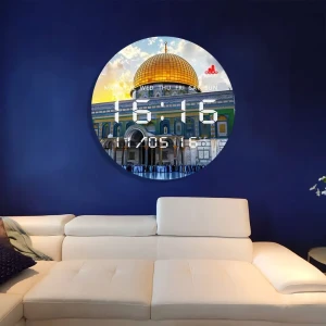 أضف لمسة روحانية لمنزلك مع هذه الساعة الرقمية الفريدة! تتميز بتصميم عصري يعرض الوقت بوضوح ⏳، مع معلومات إضافية مثل التاريخ 📆، أيام الأسبوع 📅، ودرجة الحرارة 🌡️. زُينت بصورة قبة الصخرة الذهبية مع عبارة إسلامية بخط عربي فاخر، مما يجعلها قطعة فنية رائعة تضيف الجمال والأصالة لأي مساحة.